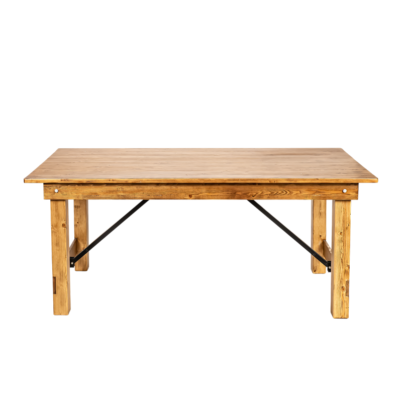 The natural structure of pine highlights the table’s unique charm, bringing warmth and coziness to any interior. Carefully crafted details and visible wood grain give it an authentic, rustic appearance. Metal reinforcements enhance the stability of the structure, ensuring reliability even during large events.