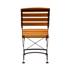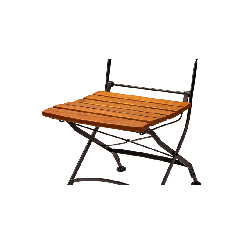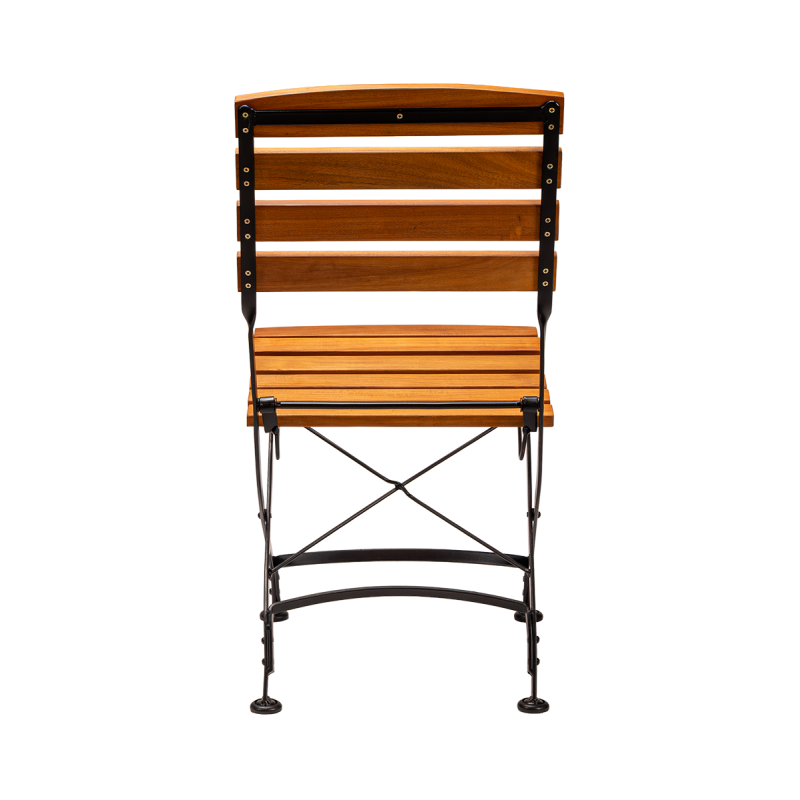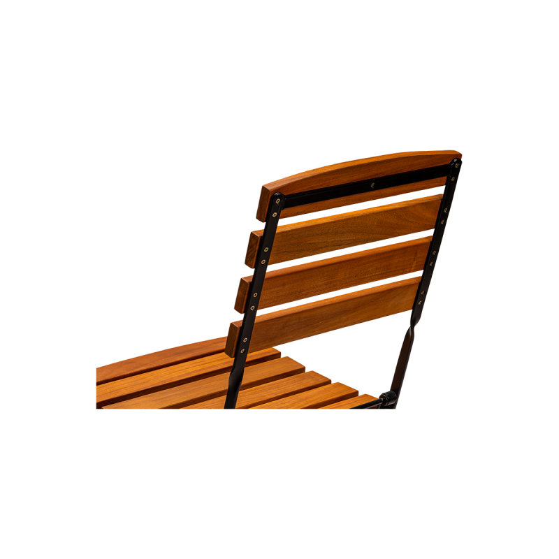 LINDA beer garden chair is a classic in the category of outdoor chairs used in restaurant, cafe or bar gardens. These are strong and durable chairs made of oiled ash wood and powder-coated steel in a two-layer system. The chair has a very strong frame made of shot-blasted steel, and the seat and back are finished with 17mm thick wooden strip, so the strength of the structure is up to 150 kg. The use of such materials in production guarantees the safety of use and makes this furniture for professional use in HoReCa facilities. The chairs are resistant to weather conditions, such as rain or strong sun. An additional advantage of LINDA chairs is that they can be folded for easy storage.