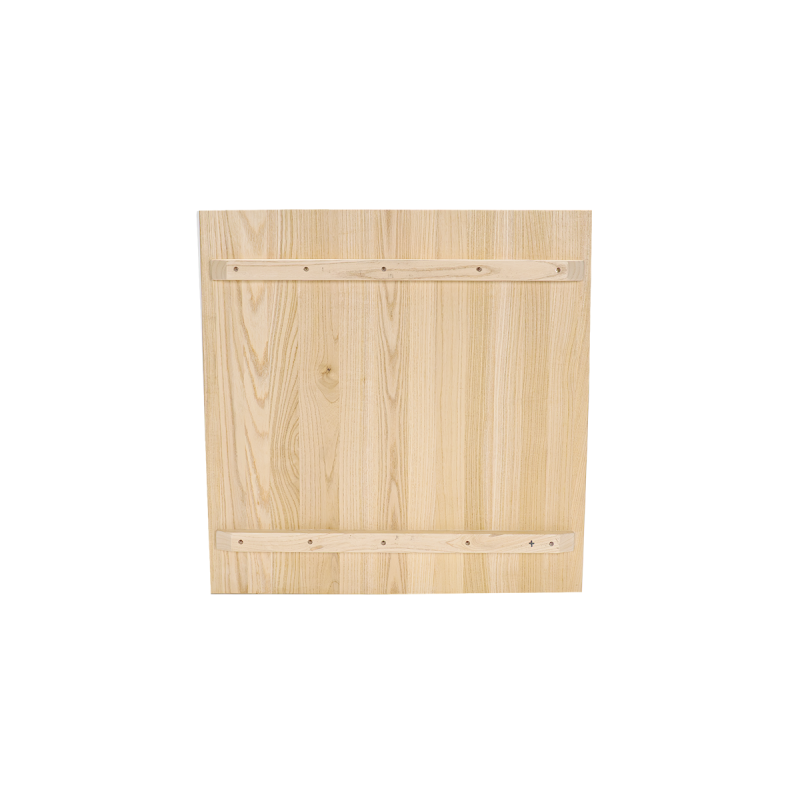 The IMPERIO model features a 30 mm solid wood tabletop finished in a natural elm colour. Despite its solid construction, the top remains lightweight, while hidden support brackets effectively protect it against warping.