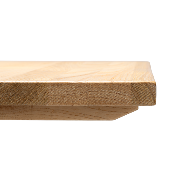 The tabletop of the PRISMA model is made of solid wood in a natural elm finish. The 30 mm thickness ensures durability while maintaining a lightweight construction. Special support brackets are mounted underneath to reduce the risk of so-called “warping” caused by humidity and temperature changes.