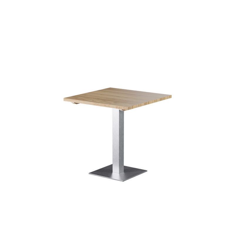 The massive base of the SIGMA wooden table is made of stainless steel, with a cast-iron core hidden inside the structure. This solution improves stability and reduces tabletop wobbling, which guests will appreciate during peak service hours. The square column measuring 8x8 cm gives the whole table a calm and confident form. The base withstands impacts well, frequent repositioning, and contact with moisture.