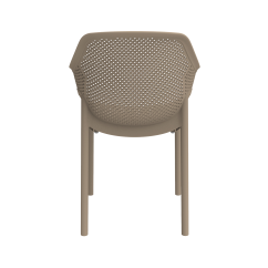 The AERO chair is a model designed for intensively used outdoor spaces. Its dynamic, openwork design adds visual lightness to any arrangement without overwhelming the surrounding décor. The profiled armrests enhance comfort, maximizing the enjoyment of time spent at your venue. This model performs exceptionally well at bars, in bistros, restaurant outdoor areas, beer gardens, and as a functional poolside chair.