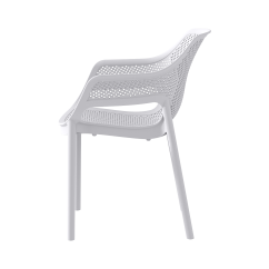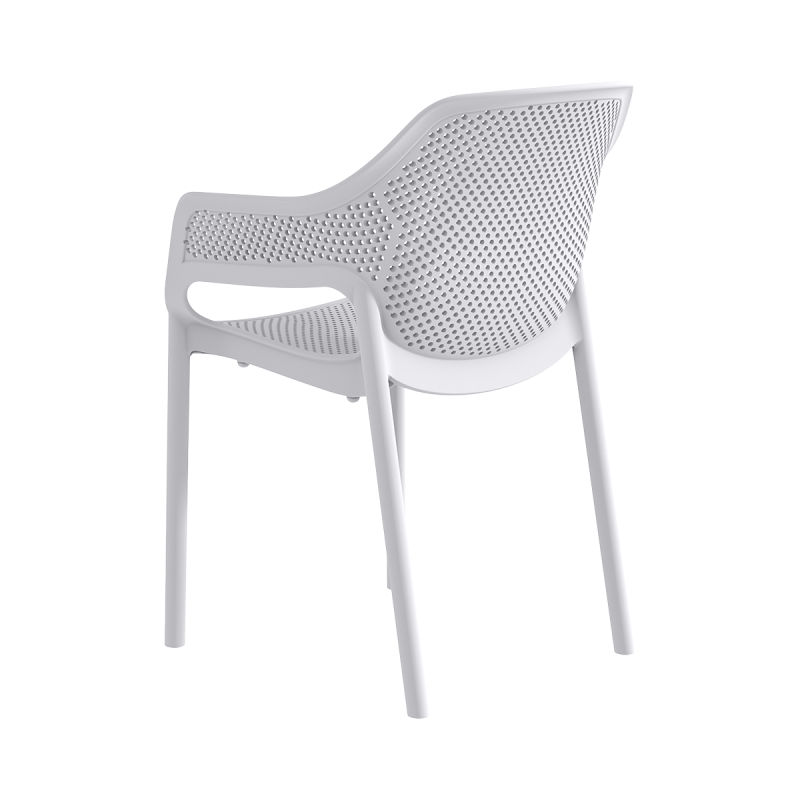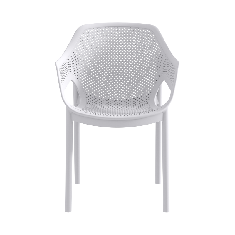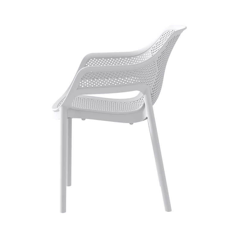 The AERO chair is a model designed for intensively used outdoor spaces. Its dynamic, openwork design adds visual lightness to any arrangement without overwhelming the surrounding décor. The profiled armrests enhance comfort, maximizing the enjoyment of time spent at your venue. This model performs exceptionally well at bars, in bistros, restaurant outdoor areas, beer gardens, and as a functional poolside chair.