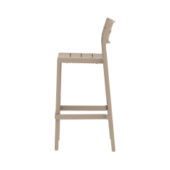 CAPRI BAR is a chair designed for high tables and bar counters . Its slim silhouette, clearly defined backrest and integrated footrest enhancing seating comfort make it a perfect fit for dynamic HoReCa environments. This plastic chair visually organizes the bar area and gives it a professional character. CAPRI BAR performs excellently in beer gardens, modern bistros, and as a functional poolside chair at hotel outdoor bars.