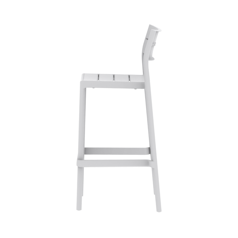 CAPRI BAR is a chair designed for high tables and bar counters . Its slim silhouette, clearly defined backrest and integrated footrest enhancing seating comfort make it a perfect fit for dynamic HoReCa environments. This plastic chair visually organizes the bar area and gives it a professional character. CAPRI BAR performs excellently in beer gardens, modern bistros, and as a functional poolside chair at hotel outdoor bars.