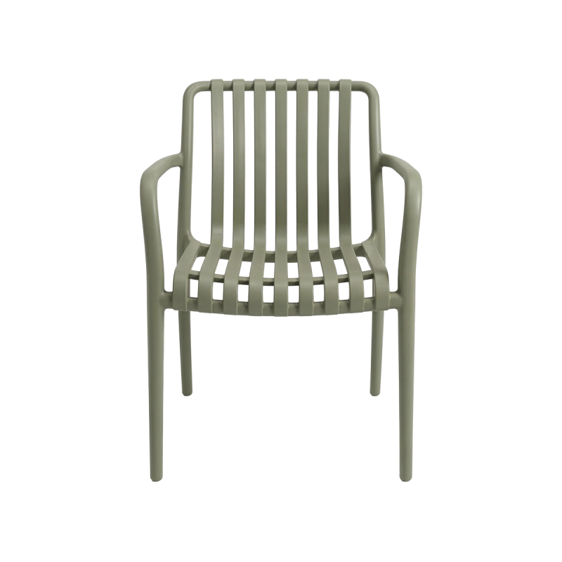 The VERTICALE outdoor chair is made of high-quality polypropylene, ensuring proper rigidity and resistance to intensive use. The characteristic vertical slats of the backrest and seat give the piece its expressive appearance. Integrated armrests enhance comfort, while the ergonomically contoured seat improves convenience during longer seating.