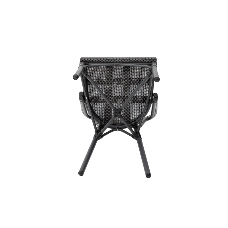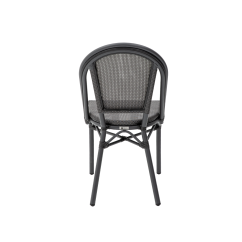 MATTEO is a technorattan chair with an elegant café-style line that creates atmosphere without unnecessary excess. The rounded backrest and subtly curved armrests give it visual lightness, while the graphite weave builds a professional image of the space. This model performs perfectly in restaurant gardens, patios and outdoor zones next to restaurants. It is ideal wherever guests expect comfort and carefully refined aesthetics.