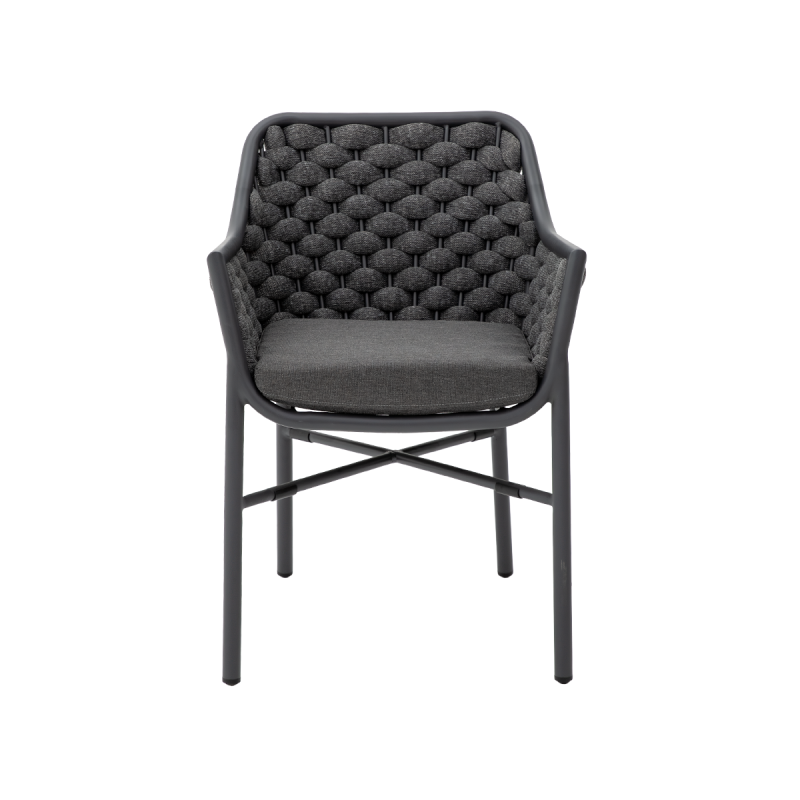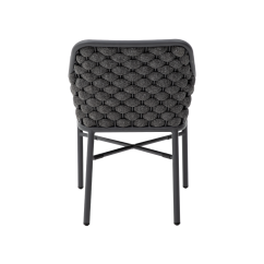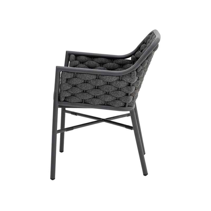 The seat and backrest of the MASSIMO model are made of woven material, reinforced from the inside with a rubber weave. This ensures the material maintains its shape even under intensive use . The thick, pronounced weave provides stable support and high seating comfort during long visits. The entire structure is UV-resistant, ensuring colour retention over many seasons.