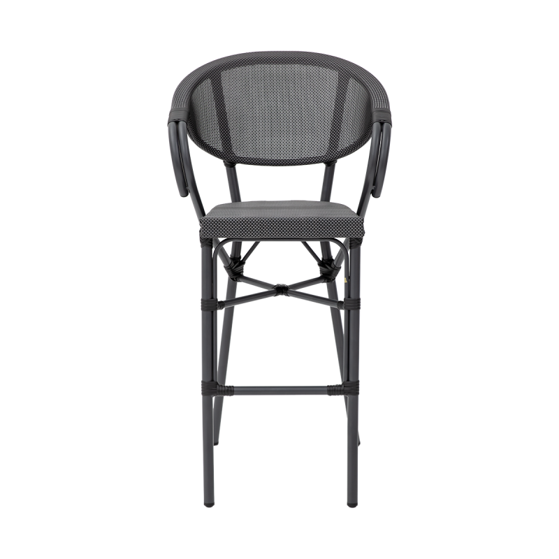 In this version of the CAMILLO BAR chair, the seat and backrest are made of technorattan mesh stretched over the frame , creating an even and stable surface. This construction ensures comfortable support and flexibility, which is essential for longer use. The fine, dense weave gives the chair an elegant look while performing well in high-traffic environments. All of this combined with UV resistance.