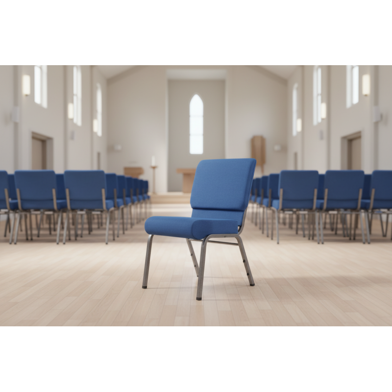 The AMBASSADOR Upholstered Church Chair is perfectly suited for churches, chapels, and parish halls. It is a popular choice for main naves, side chapels, catechetical rooms, and other meeting spaces for religious communities. Thanks to its row-linking and stacking functionality, it is also a practical solution for retreats, parish missions, and occasional events.