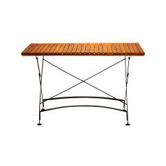The Lara 120x70 cm beer garden table is a larger version of the classic Lara table, designed for spaces that require a greater usable surface area. Its solid steel frame, powder-coated in black, guarantees stability, while the acacia wood tabletop impresses with its natural appearance and durability in everyday use.