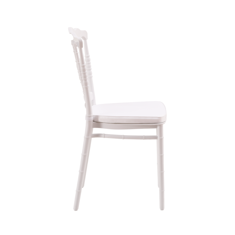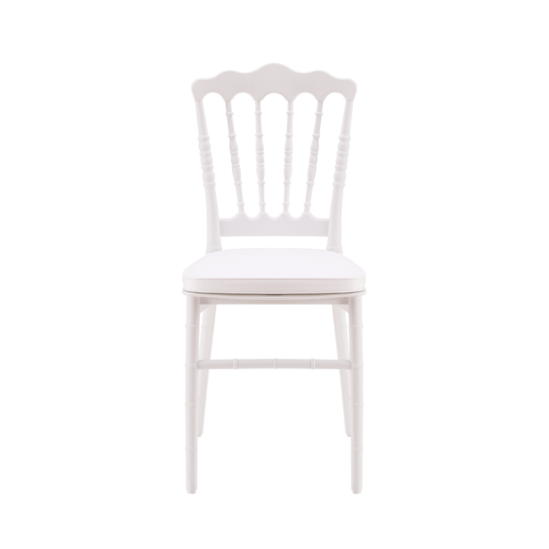 The Simple wedding chair cushion is dedicated to our Chiavari Tiffany Simple and Napoleon Simple wedding chairs. It is a classic white model that works perfectly in halls with diverse décor. The waterproof fabric protects the cushion from spills.