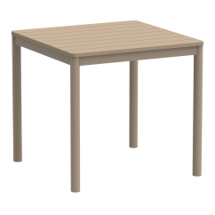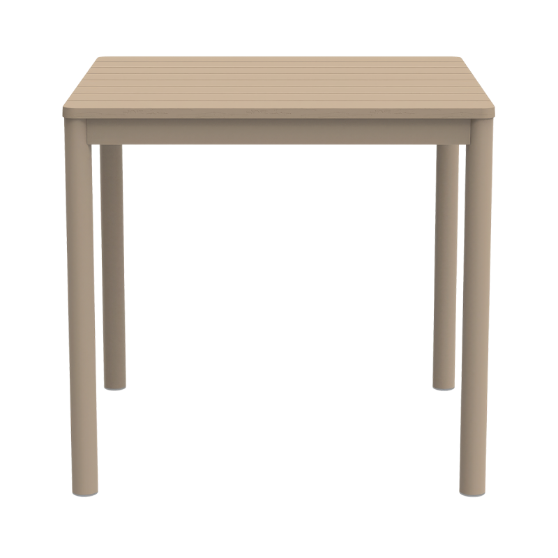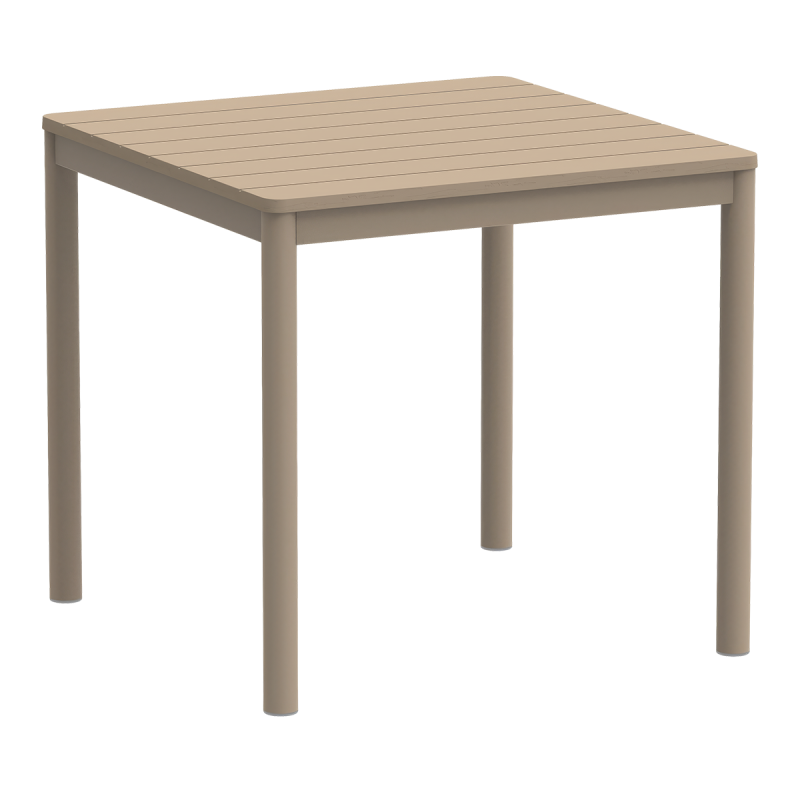 TERRAZZA 80x80 offers great flexibility in arrangement. It can stand alone or create cohesive layouts along a building façade. In restaurant gardens, it helps define organized zones and maintain smooth transitions between them. As a beer garden table, it performs well in high-turnover environments where stability and easy repositioning are essential. It is also a functional outdoor table for hotel patios, restaurant terraces and relaxation areas. Additionally, it can serve as a poolside table in SPA facilities and resorts.