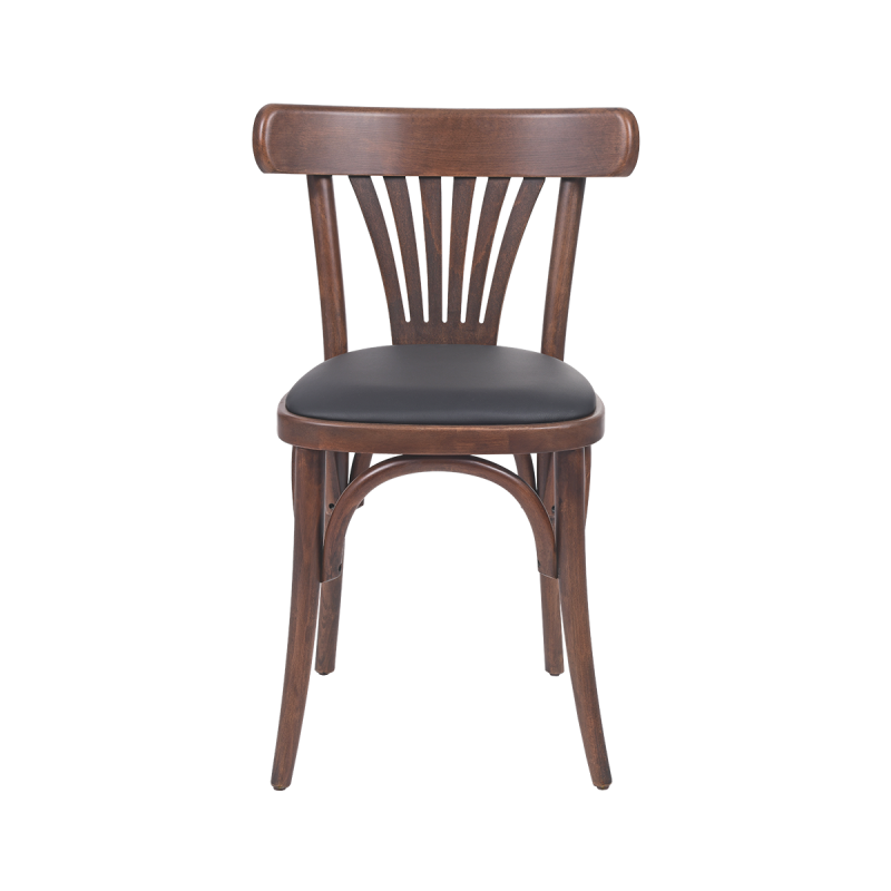 The LEGEND model is ideal for classic-style restaurants, elegant cafés, hotel breakfast rooms and lobby areas. Natural wood warms the arrangement, while the black upholstered seat adds definition and a professional tone. This wooden chair harmoniously combines tradition with modernity. Its form does not overwhelm the interior, while emphasizing its refined and prestigious character .